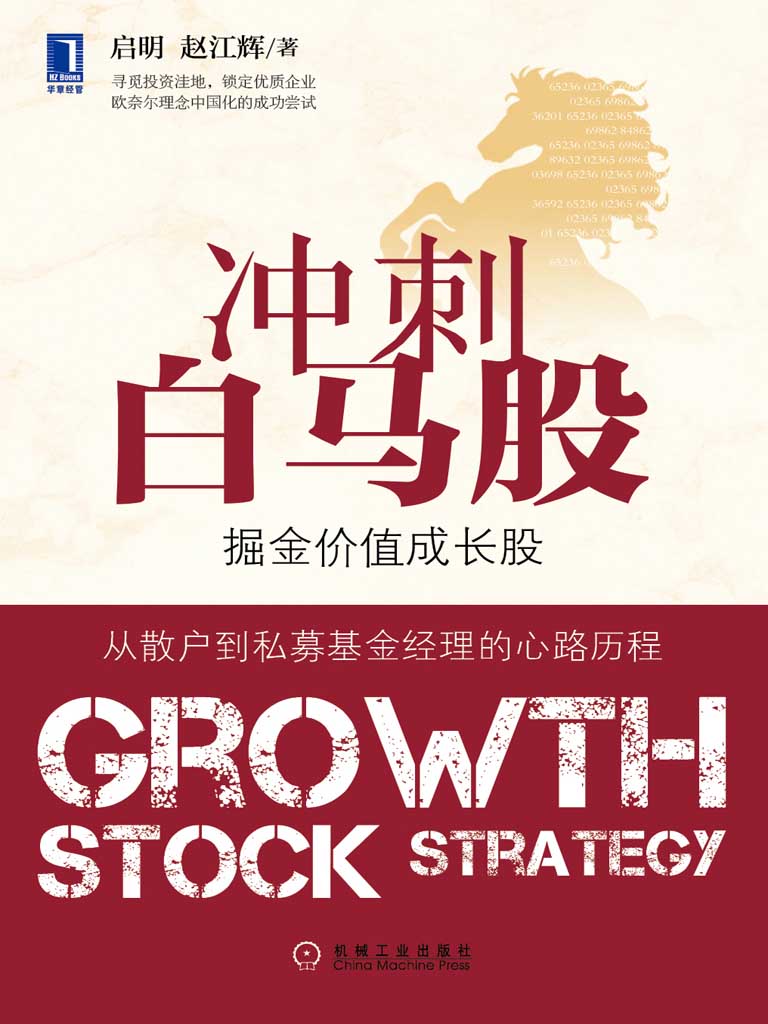而启明正是在仔细研读了威廉·欧奈尔的大作之后,总结了他自己十多年的投资历程,将自己的投资理念和选股方法总结成本书——《冲刺白马股》。本书不但描述了启明如何从一个散户投资者到私募基金经理的蜕变过程,而且详细介绍了启明是如何选择白马股和操作白马股的。无独有偶,威廉·欧奈尔也是从一个散户投资者不断成长为美国投资界大鳄的。认真拜读本书之后,你的投资思路会更加清晰。